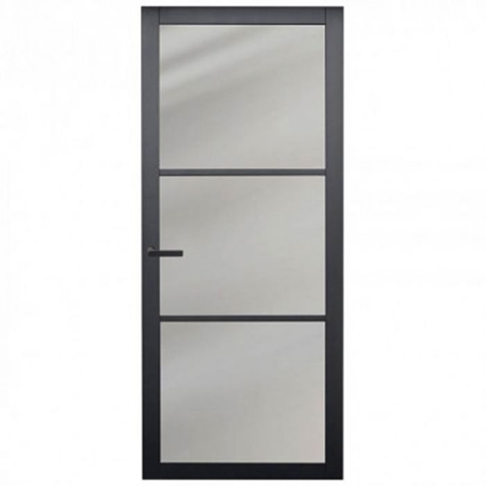 Austria Nero Legno Genova Tinto is een binnendeur uit de serie industriële deuren van Austria. Met een zwarte voorbehandeling (RAL 9005 gelijkend) en de aanwezigheid van 3 vlakken getint gelaagd veiligheidsglas past deze deur perfect in een modern interieur. Austria Nero Legno Genova Tinto is verkrijgbaar in stompe uitvoering. Het Austria Nero deurbeslag past perfect bij deze deur, welke voorzien is van smalle stijlen en dorpels.