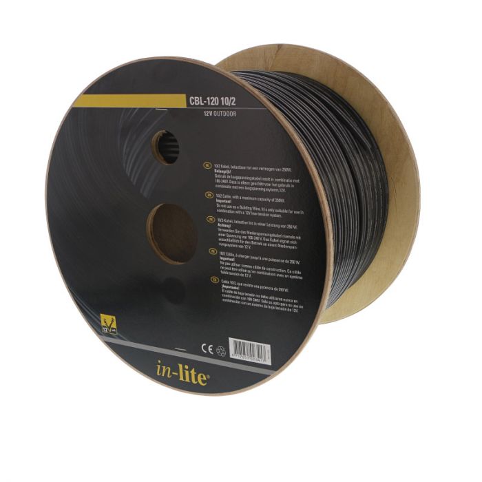 Een 2-aderige laagspanningskabel van 12 volt, die een afstand van 120 meter kan overbruggen. Dat is de In-lite CBL-120 10/2. Deze kabel kan belast worden met maximaal 250 watt en is geschikt om een grotere afstand te overbruggen. Voor kleine afstanden kunt u kiezen voor de CBL-40 10/2 van In-lite.