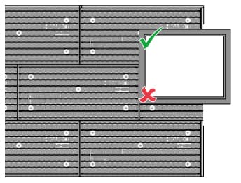 Bij een gevoegde afwerking werk je de ramen en deuren met een rollaag van verticale hoekstrippen af. Boven deze rollaag laat je de steenstrippen horizontaal doorlopen. Zet de bovenzijde van de rollaag eerst op je gevel uit. Daarna kun je met een veelvoud van de lagenmaat naar beneden tellen. Vervolgens zet je het startprofiel op de juiste hoogte vast. Klopt de gekozen starthoogte voor andere openingen niet? Dan kun je de rollagen aan deze openingen inkorten.