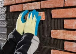 Kies je ervoor om de steenstrips in te korten? Doe dit dan om esthetische overwegingen maximaal 25%. Daarna kun je de steenstrips verlijmen op de isolatieplaat. Zorg ervoor dat de kopvoegen boven elkaar doorlopen.