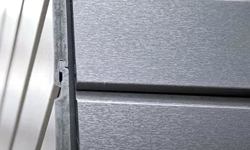 Bij de kopse kant van de gevelpanelen moet rekening worden gehouden met een tussenruimte van 8 mm. Monteer tussen de panelen een koppeling of koppelprofiel, of werk de kanten af met kantenlak.