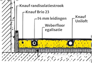 Stap 1: Gebruik Knauf Brio 23 WF voor een vloerverwarmingssysteem met watervoerende leidingen. Let op! Knauf Brio 18 MW is niet geschikt voor vloerverwarming.