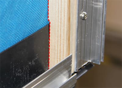 Op de plek waar het ventilatieprofiel is bevestigd, moeten de rachels worden versmald. Het ventilatieprofiel is namelijk 2 mm dik. Door het regelwerk te versmallen met 3 mm voorkom je dat de VinyPlus gevelpanelen licht gaan kantelen. Uiteraard doe je dit vóórdat je het regelwerk op de ondergrond gaat bevestigen.