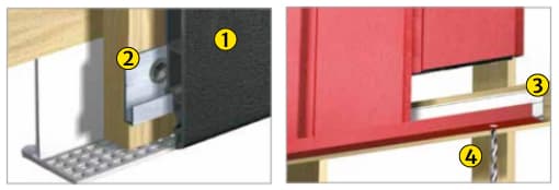 Monteer nu het startprofiel minimaal 30 mm boven de grond. Dit is noodzakelijk omdat het startprofiel (2) achter het VinyPlus gevelpaneel (1) valt. Voor horizontale en verticale montage van de gevelpanelen gebruik je een verschillend startprofiel. Daarnaast dien je bij het verticaal startprofiel (3) om de 400 mm gaten te boren voor een goede afwatering (4).