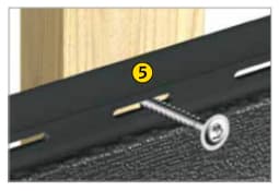 Nu kun je de panelen monteren. Deze bevestig je bij voorkeur met VinyPlus bevestigingsschroeven van minimaal 30 mm lang. De panelen zijn voorzien van sleufgaten (5). Het is belangrijk dat de schroeven in het midden van de sleufgaten worden geschroefd en los-vast aangedraaid. Hierdoor kan het paneel bij thermische uitzetting bewegen.