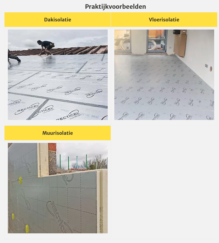 De benodigde dikte hangt af van het toepassingsgebied en de gewenste isolatiewaarde (Rd-waarde). Hieronder zie je de algemene richtlijnen. In de praktijk mag je altijd dikker isoleren voor betere prestaties.