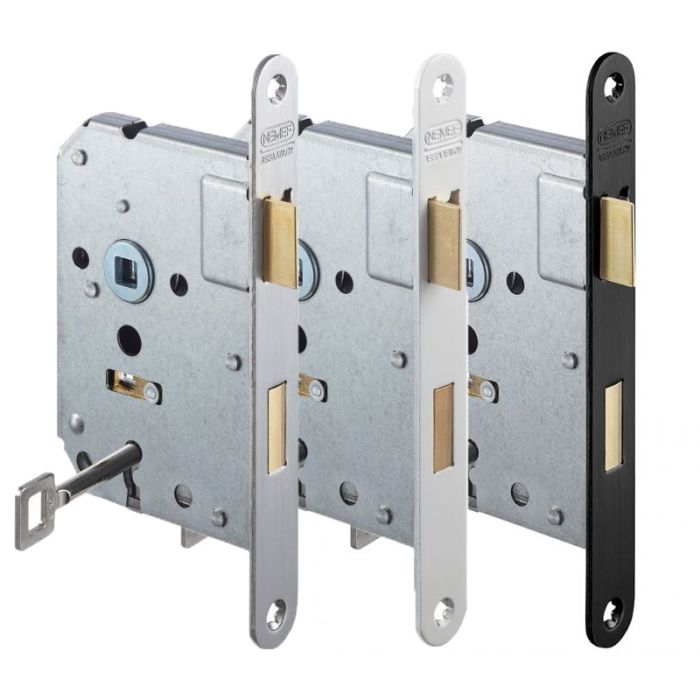 Het Skantrae Nemef Dag- en Nachtslot Klavier 1266 is een universeel kastslot uit de Nemef 1200 serie. Veel binnendeuren in ons assortiment zijn ook voorzien van een frezing voor een Nemef 1200 serie binnendeurslot. Hierdoor is dit dag- en nachtslot met de meeste binnendeuren makkelijk te combineren. De dagschoot is omlegbaar, waardoor je dit slot kunt gebruiken voor zowel een linksdraaiende als rechtsdraaiende deur.
