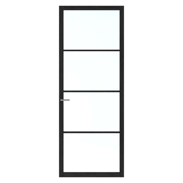 De Skantrae SlimSeries SSL 14704 binnendeur in 'Charcoal Oak' is een elegant ontworpen deur met vier vlakken, verdeeld door drie horizontale smalle roedes van slechts 20 mm breed. De deur is ook voorzien van blank glas, dat de ruimte lekker licht houdt en bovendien veiligheidsglas is. De Skantrae SlimSeries SSL 14704 is onderdeel van de Matching Series van Skantrae, een serie die bekendstaat om zijn elegantie en minimalisme. Je kunt deze deur volledig afgelakt bestellen in 'Deep Black' (RAL 9011) of 'Pure White' (RAL 9010) voor een strakke, minimalistische uitstraling. Let wel op: Bij bewerkingen aan de deur dient deze opnieuw gegrond en gelakt te worden. Daarnaast is er de optie voor een fineerafwerking in 'Charcoal Oak' of 'Natural Oak' voor een natuurlijke look. Door zijn tijdloze uitstraling past deze deur bij elk interieur.
