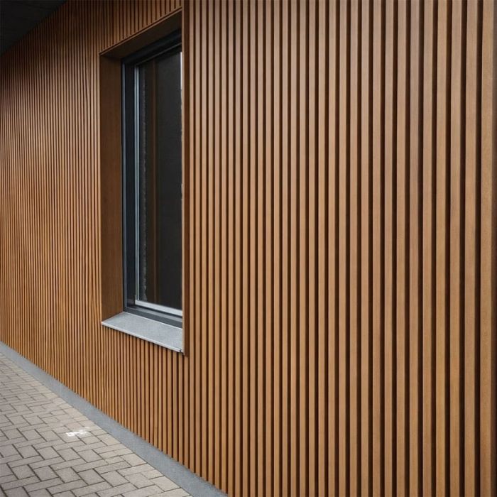 WEO 35 Gevelbekleding Houtcomposiet is een hoogwaardige Composiet gevelbekleding dat geschikt is voor zowel horizontale als verticale montage. Dankzij het triple rhombus profiel krijgt je gevel direct een strakke, moderne uitstraling met een fraaie lattenstructuur. De geborstelde afwerking, subtiele kleurnuances en realistische houtstructuur zorgen voor een natuurlijke uitstraling die sterk doet denken aan onbehandeld natuurlijk hout. Tegelijkertijd profiteer je van alle praktische voordelen van het composiet.